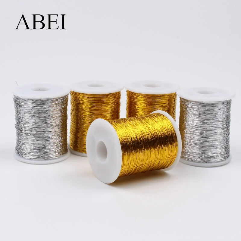 0,5mm 27,5 metros/rollo de hilo de punto de cruz, hilo de plata y dorada en bobina