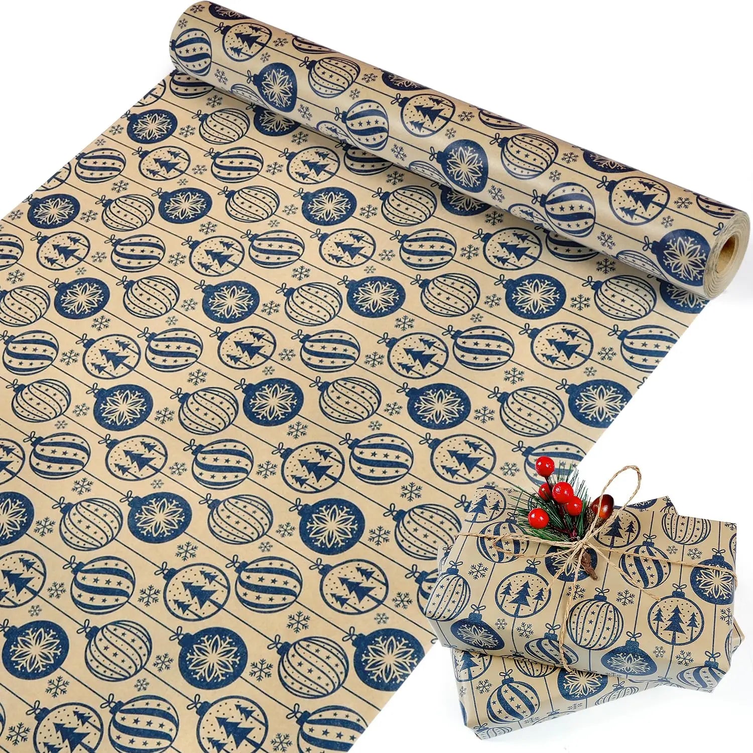 1 rollo de papel de regalo navideño de 44 cm x 15 mts aprox., diseño de bola de decoración navideña