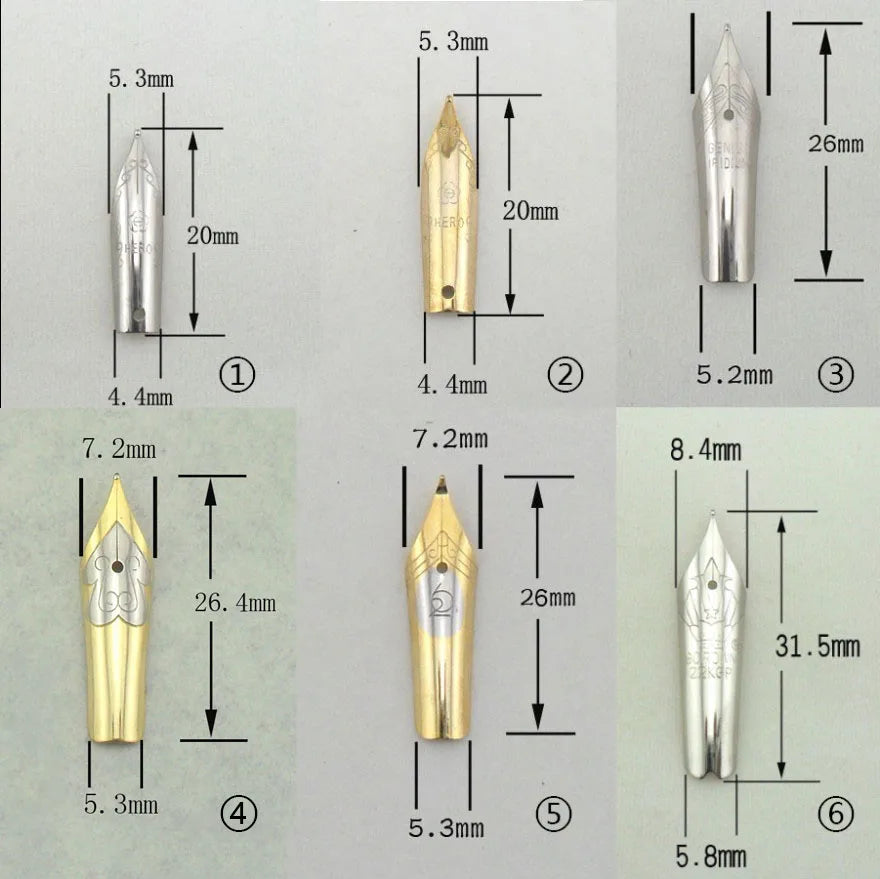 Pluma estilográfica de repuesto Universal Hero Picasso Número 20 26 31,5 Mm punta curva recta de dos colores