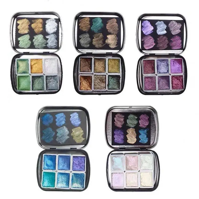 POEZIE-Caja de acuarela metálica sólida profesional, 2ml, 6 colores, brillo