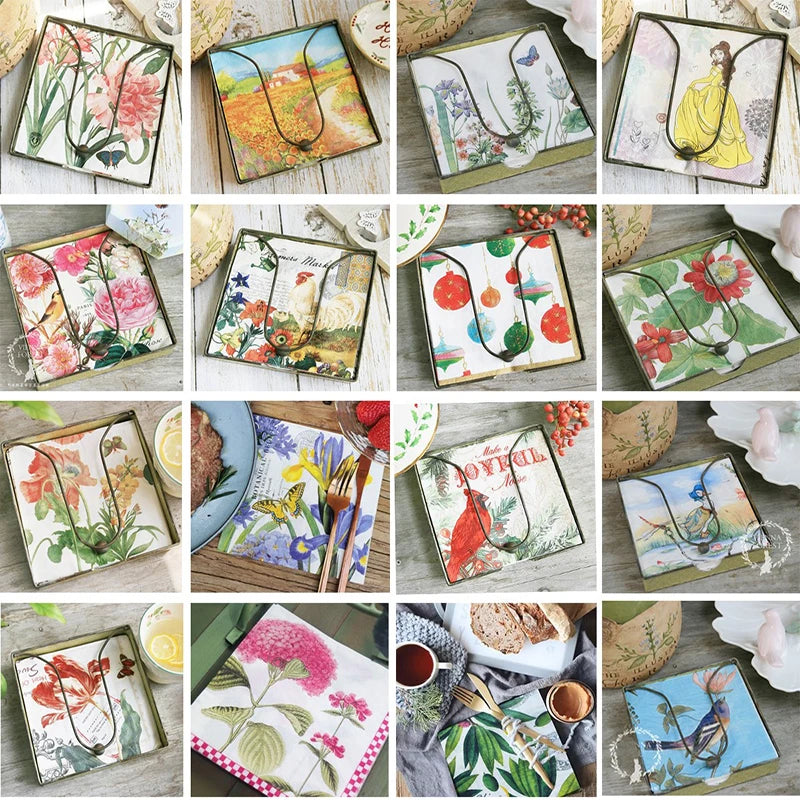 Decoupage-Servilletas de papel para mesa, pañuelo elegante vintage, servilletas de flores, mariposa, etc., decoración bonita, 20 unids.