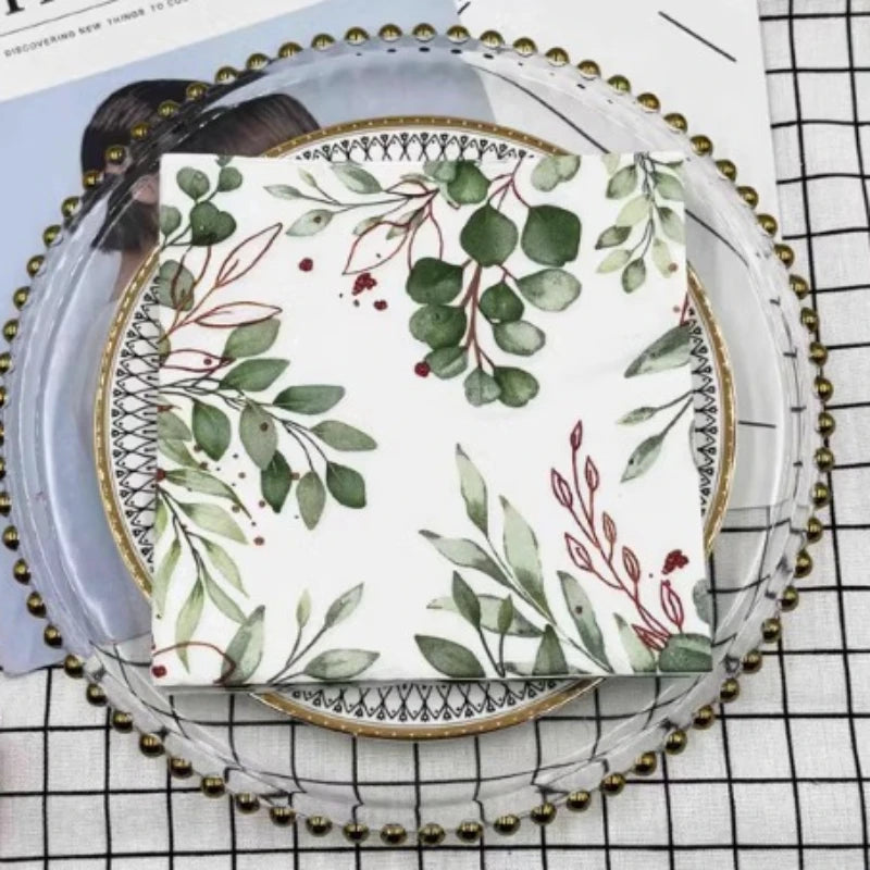Servilleta estampada de hoja verde, 10/20 unidades por paquete