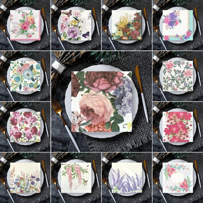Servilletas de papel de flores, decoraciones de mesa, servilletas artísticas para decoupage, servilletas desechables para fiesta