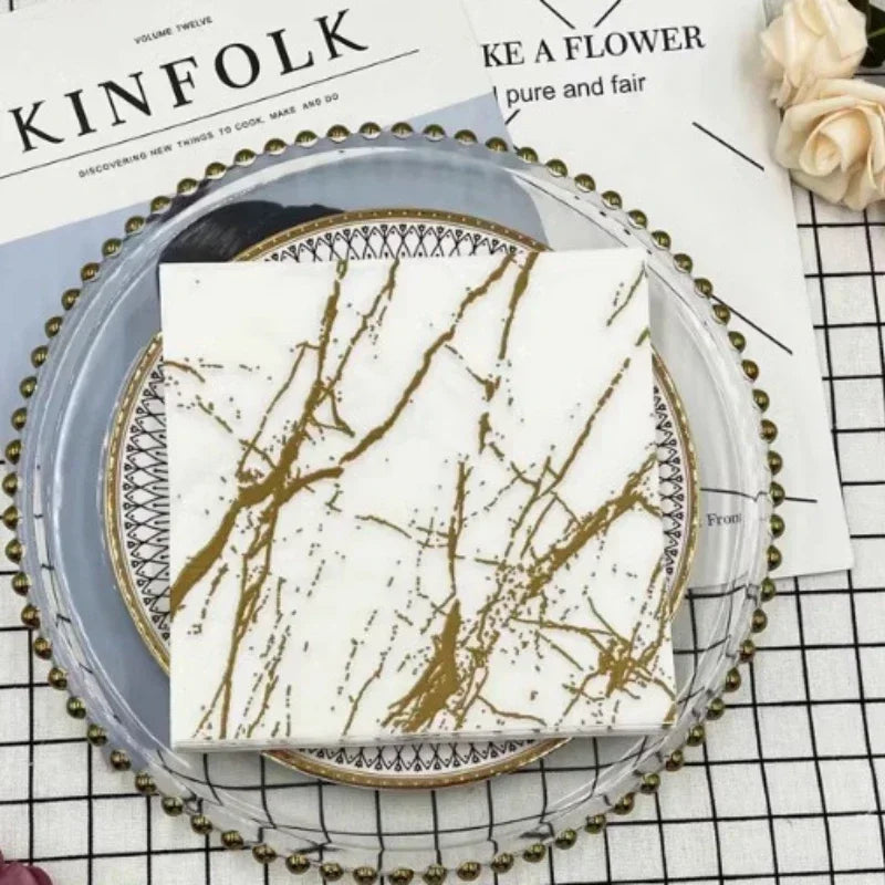 Servilletas de papel con estampado de mármol blanco de 2 capas, 10/20 piezas/Pac, 33x33cm