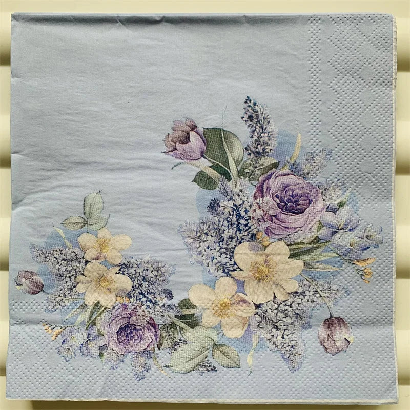 20 unids/bolsa servilletas con estampado de flores moradas, retro, decoración para fiesta.