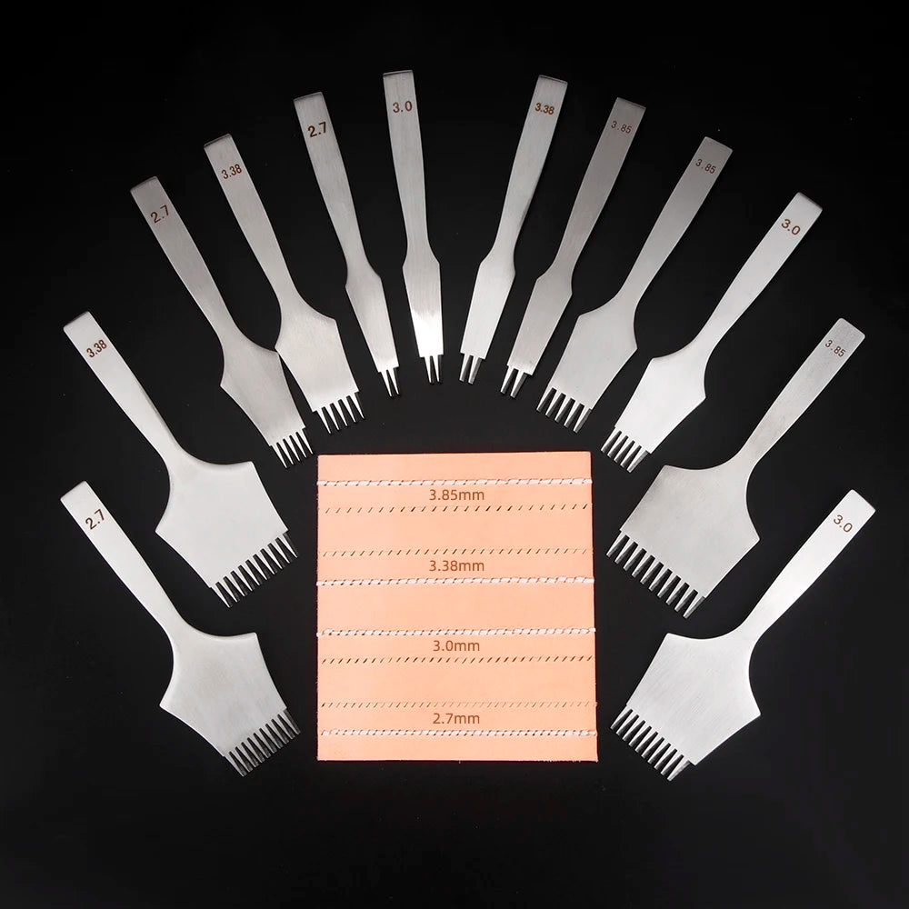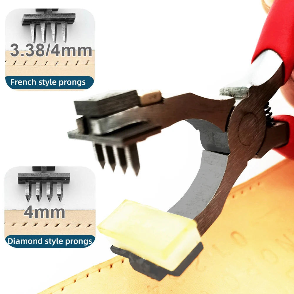 Alicates perforadores para Cuero, juego de herramientas de cincel de diamante de hierro para pinchazo silencioso, cincel de costura francesa de 4mm/3,38mm para agujeros de costura
