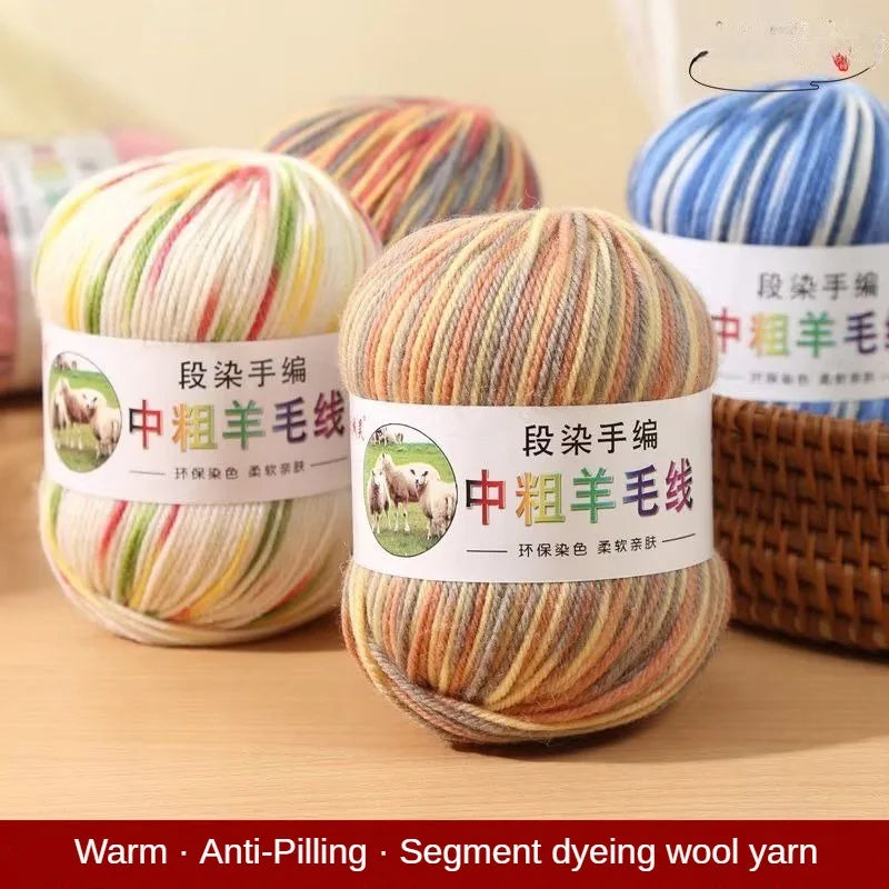 Lana de oveja teñida por segmentos de 100g para tejer a mano 2.5mm
