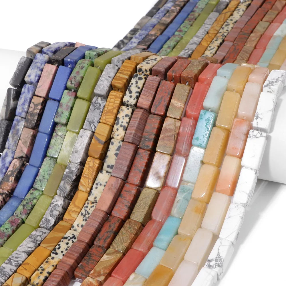 5 unids de mostacillas (cuentas) de tubo cuadrado de piedra natural, piedra de cuarzo amazonita rectangular para fabricación de joyería de 8x20mm