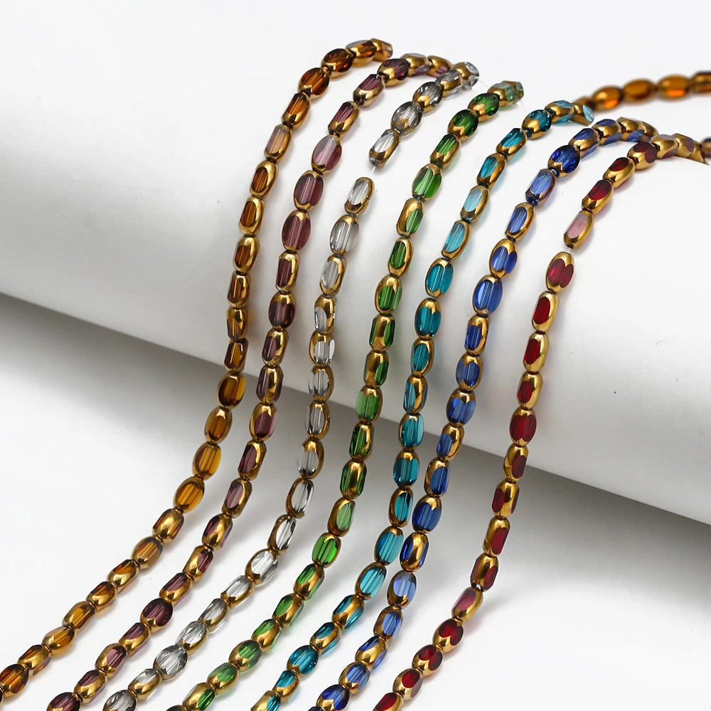 Meibeads 50 unids/lote 4mm * 7mm cristal elipsoide, mostacillas (cuentas) con orificio, color sólido, espaciadoras de vidrio para fabricación de joyería