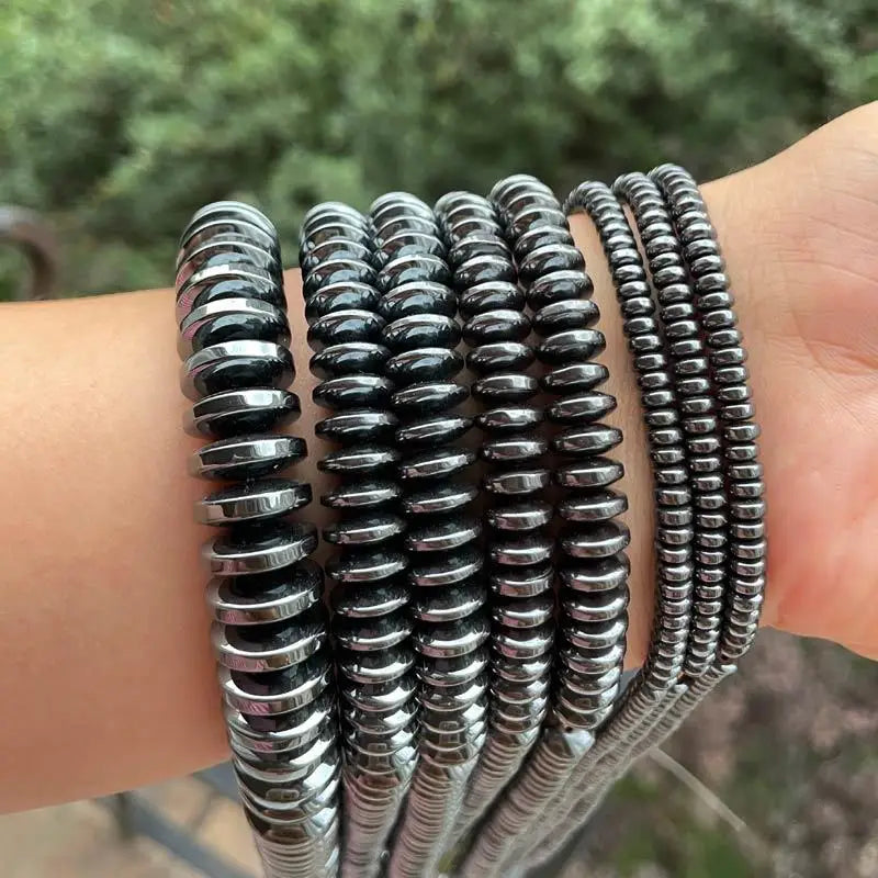 Mostacillas (cuentas) de piedra natural de hematita en variedad de formas, negras, en hilo de 38 cm aprox. para fabricación de joyas