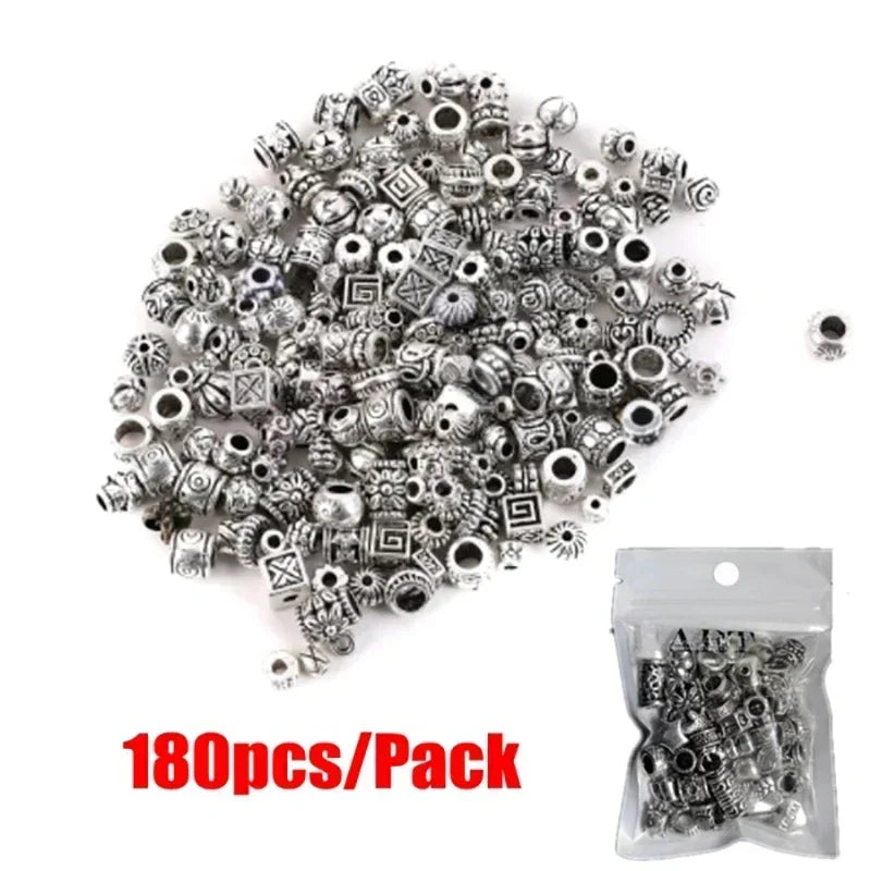 Mezcla de mostacillas (cuentas) espaciadoras de metal de color plata antigua tibetana para fabricación de joyería (180 aprox.)