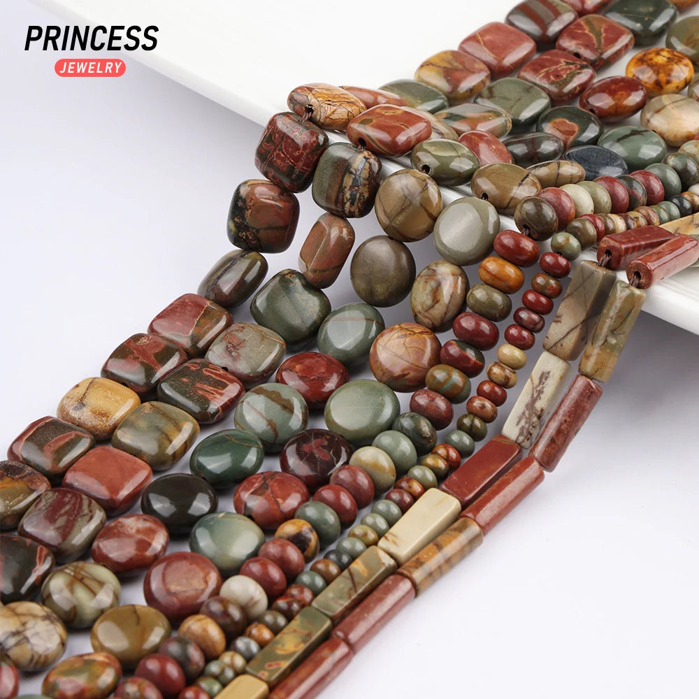 Jaspe Picasso Natural Tubular, Rondelle y cuentas sueltas cuadradas para hacer joyería, pulsera, accesorios