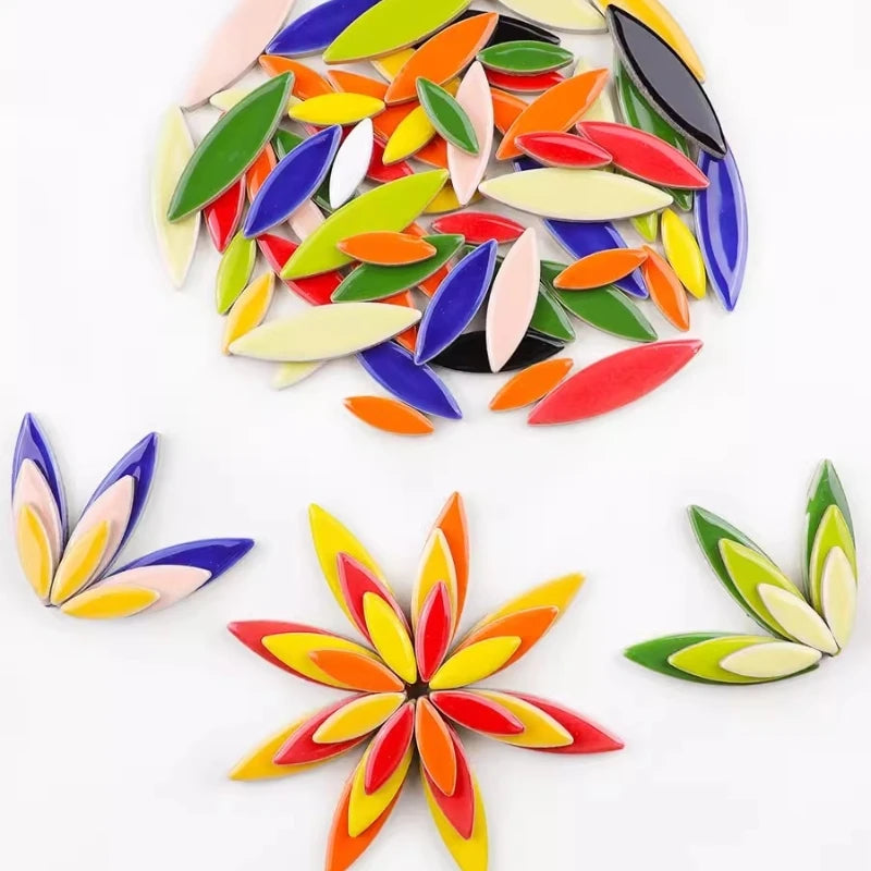 Azulejos de mosaico de pétalos de colores mezclados, decoración artística de vidrieras cortadas a mano, piezas de azulejos a granel, adornos, suministros para manualidades, 100 unids/set