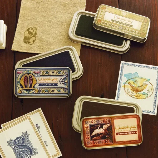 Almohadillas de tinta japonesas Classique, tinta aceitosa de Color Retro, almohadilla de tinta de secado rápido, sello de caja de Metal resistente al agua, 12 colores disponibles, 1 ud.