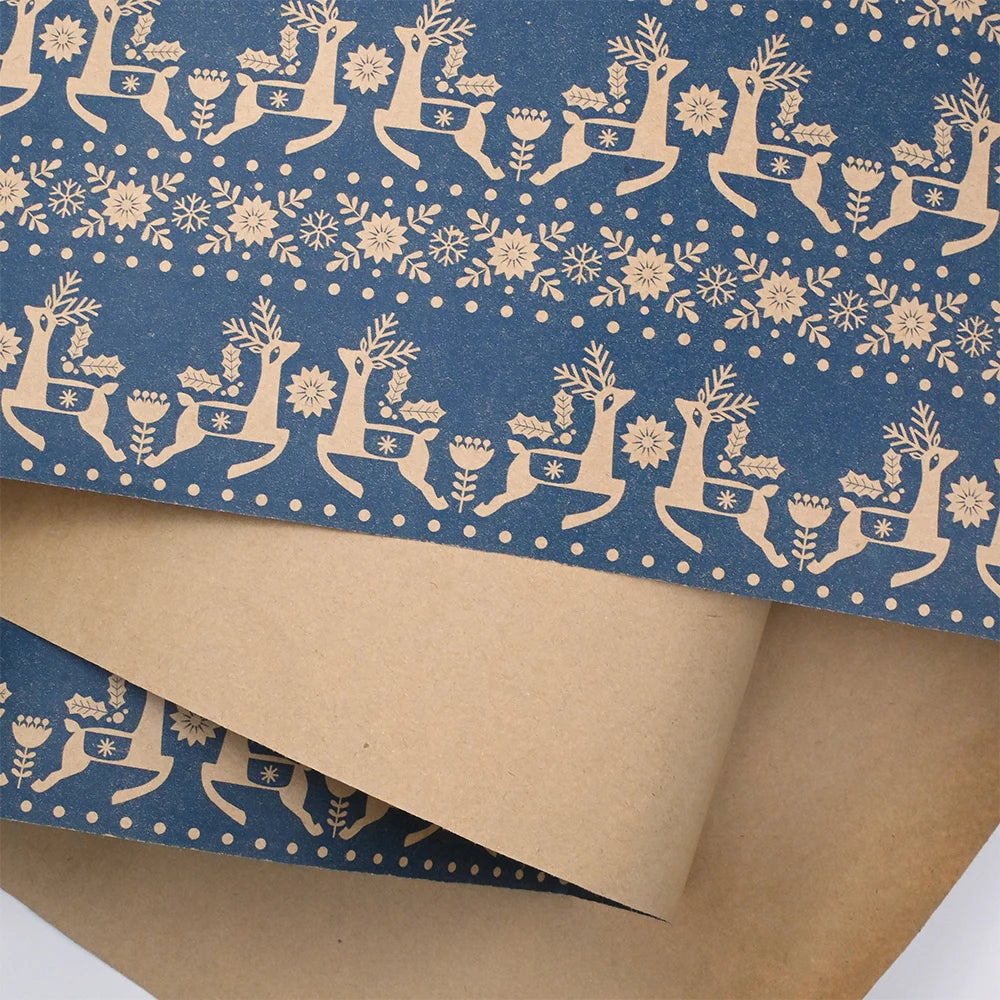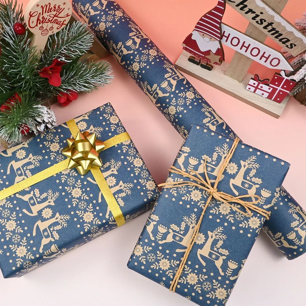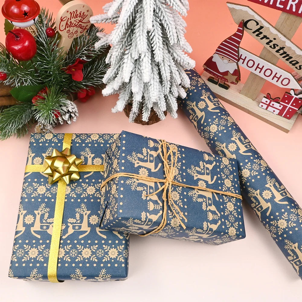 MULTIUSOS: papel kraft marrón chic impreso con diseños, este papel de regalo no solo se puede usar como papel de regalo navideño, sino que también es ideal para revestimientos de mesa, caminos de mesa, proyectos de manualidades y otras inspiraciones.
