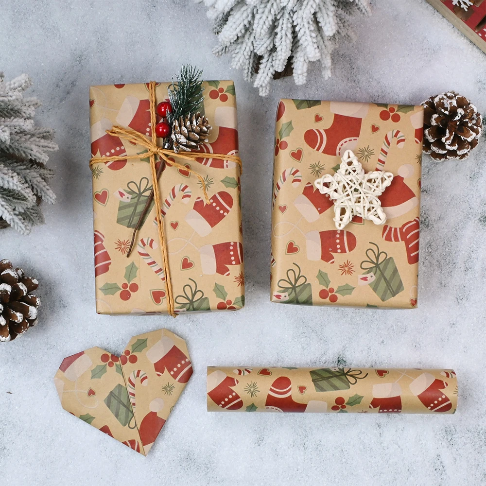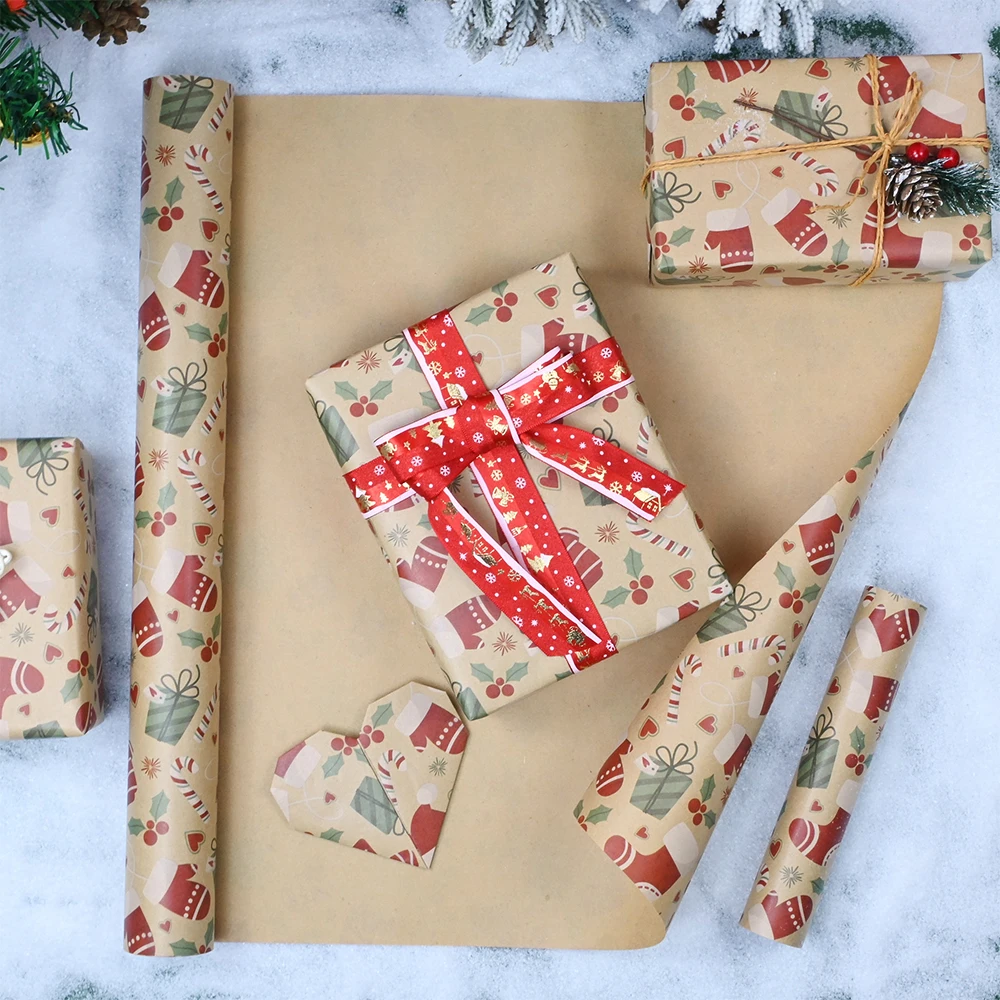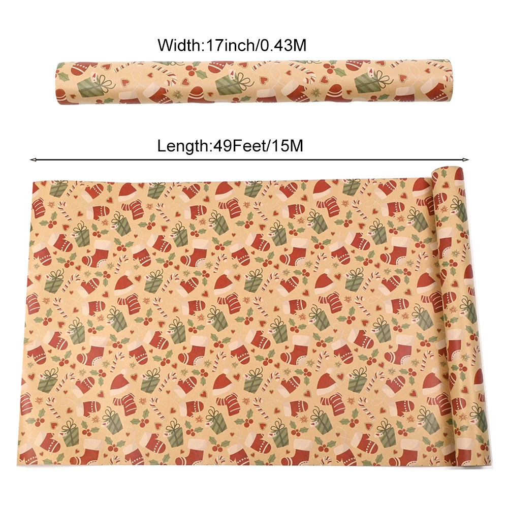 1 rollo de papel de regalo navideño de 44 cm x 15 mts aprox., papel Kraft con...