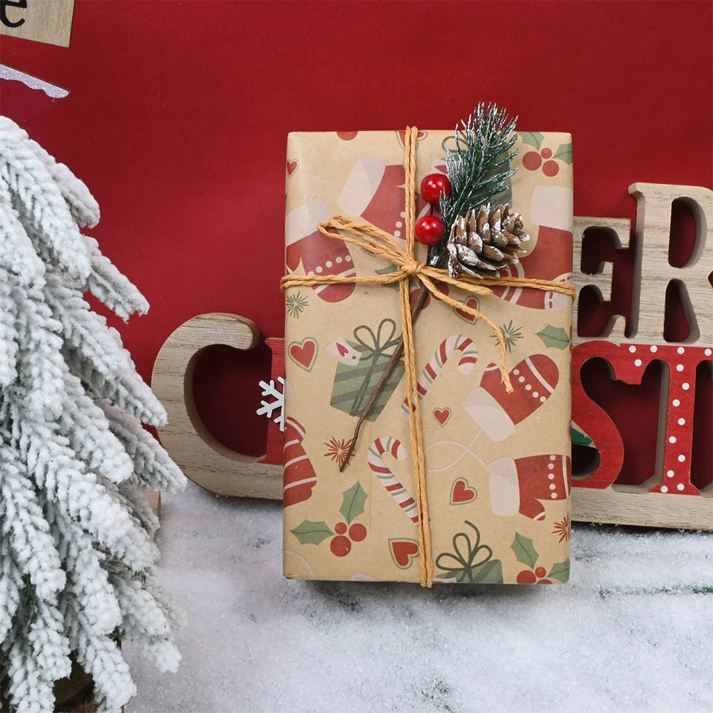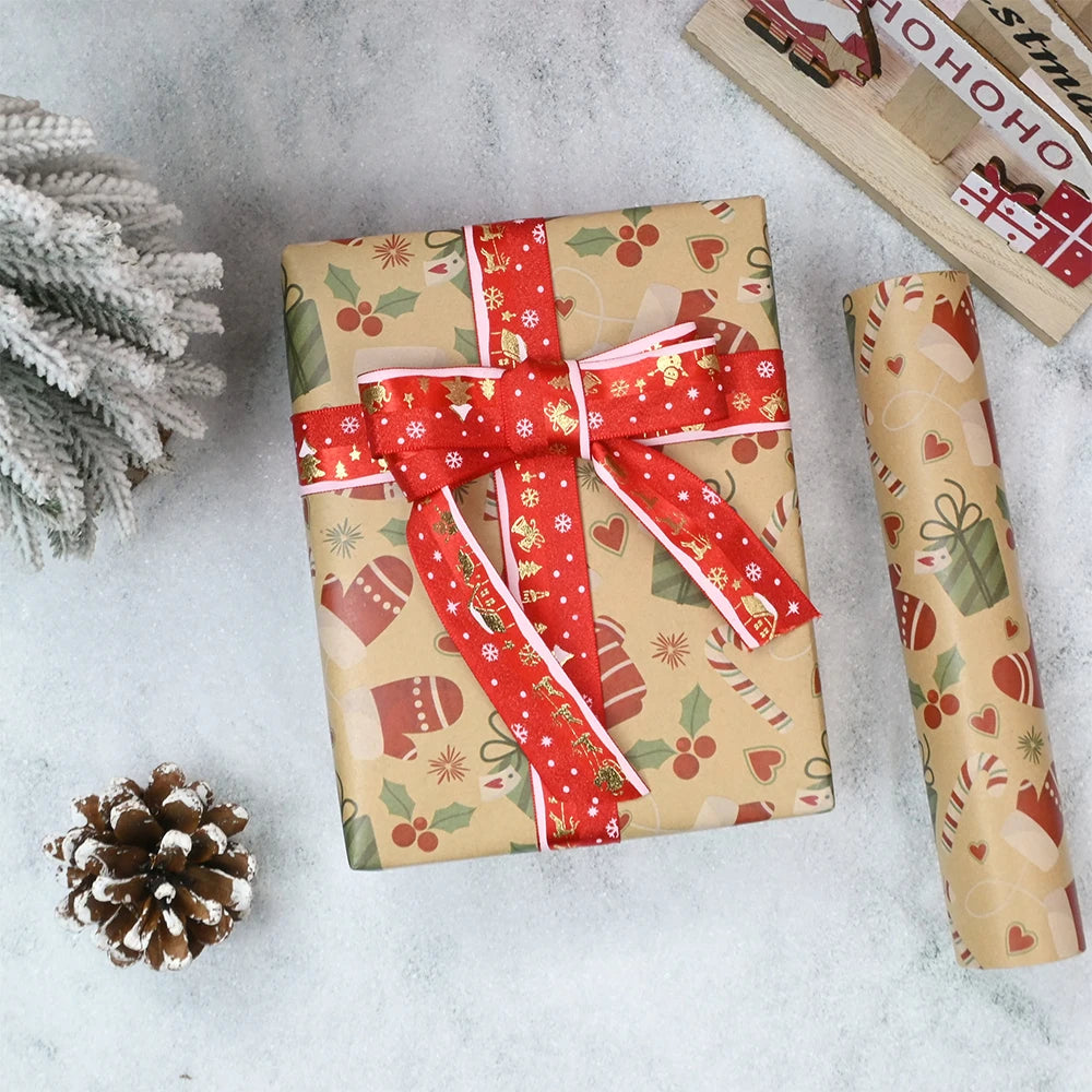 Nombre: 1 rollo de papel de regalo navideño de 44 cm x 15 mts aprox., papel de regalo con sombrero y guante, adornos navideños