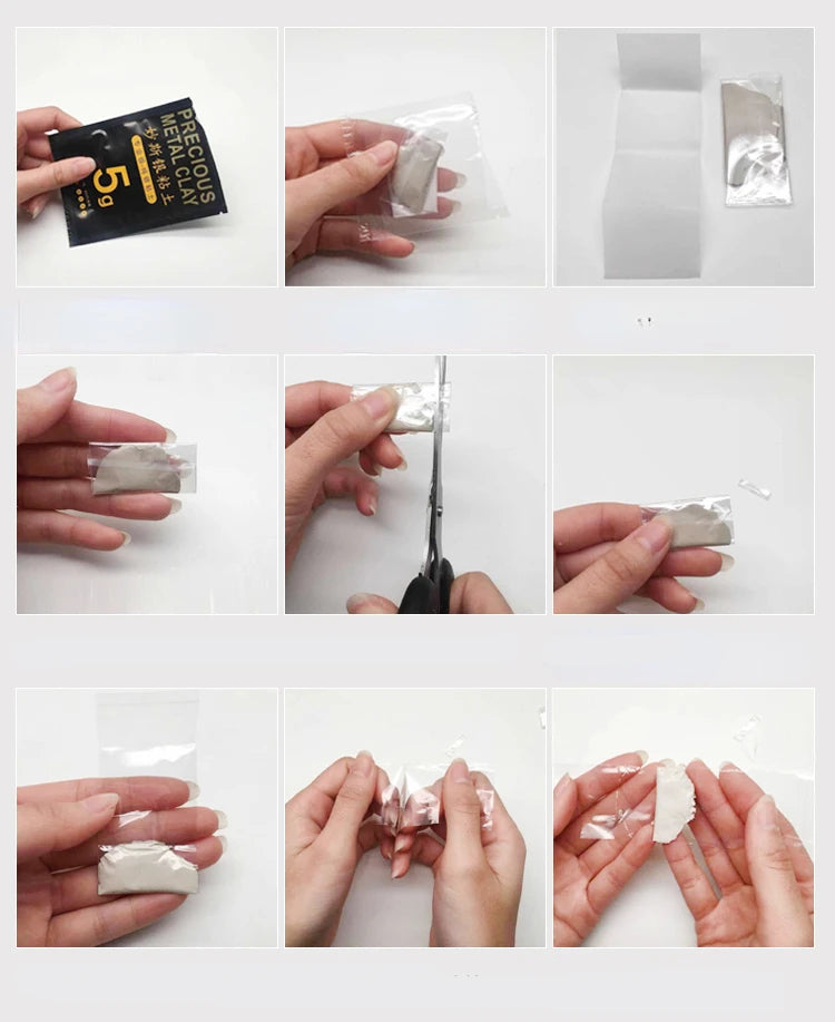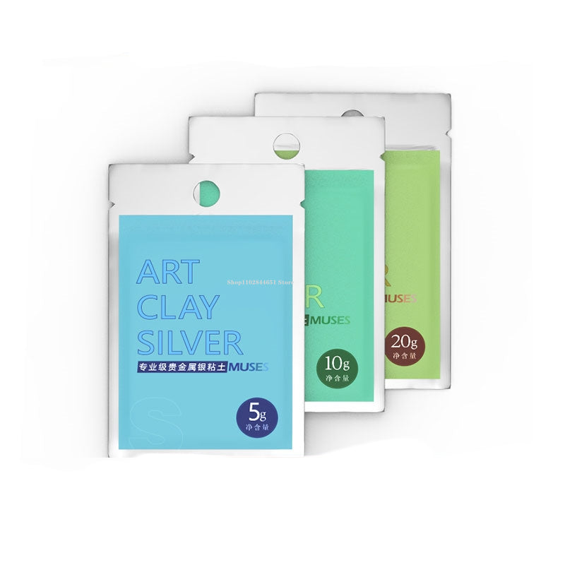 Este producto es el bloque de plata de alta pureza molido en polvo después de mezclar materia orgánica compuesta de arcilla plateada plástica, el modelado es muy conveniente e inofensivo y no tóxico. Después de la cocción posterior, la materia orgánica se quemará por completo y retendrá solo el 99.% de contenido de plata pura. Como un material de metal precioso de la nueva era. Cambia la artesanía tradicional de plata. Crear joyas de plata tiene un espacio creativo más amplio.