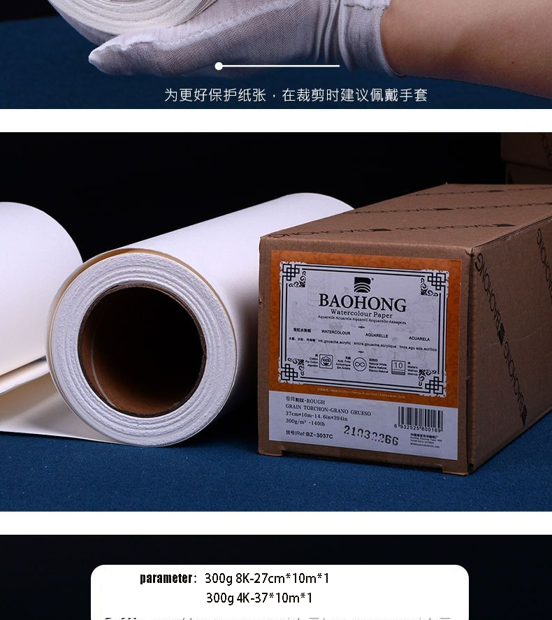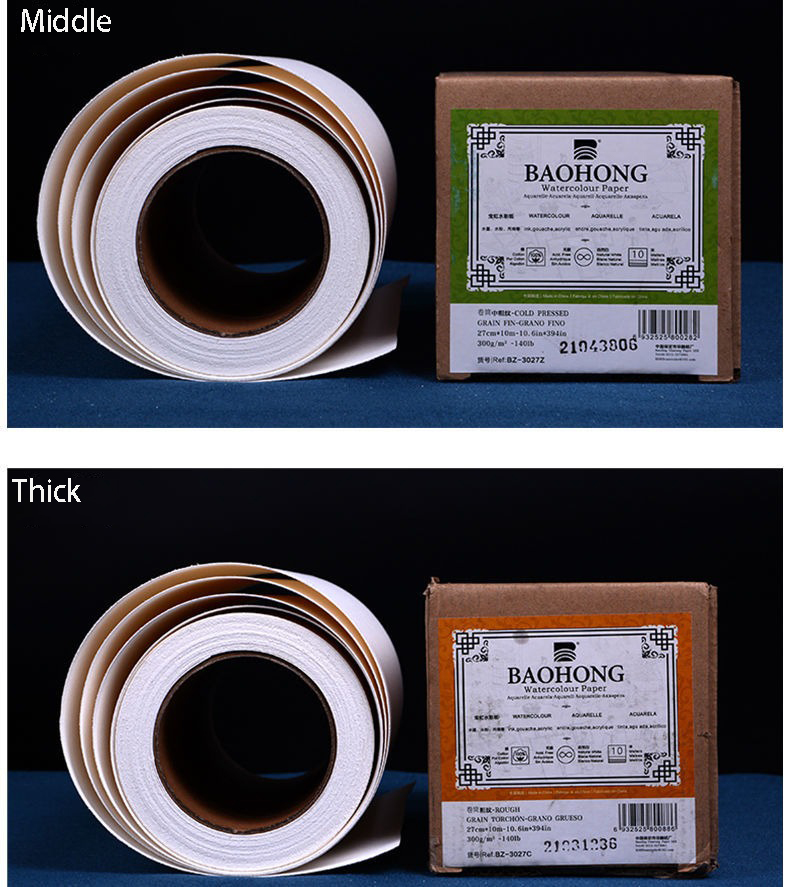 Nombre: BAOHONG Rollo de papel de acuarela 100% algodón