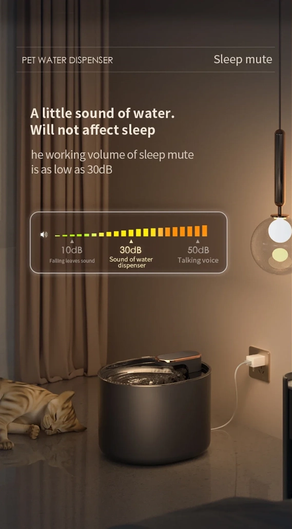 Las mascotas se asustan fácilmente con ruidos no identificados.Lo notamos y mejoramos este defecto por no asustar a las mascotas que se acercan a beber.Con esta mejora, incluso cuando está funcionando y de noche, no molestará el sueño.¡El adaptador no está incluido!