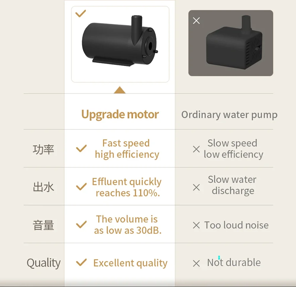 Notas cálidas: la bomba de agua ordinaria del dispensador de agua solo puede garantizar que la máquina pueda descargar agua normalmente y que los gatos puedan beber agua normalmente sin función de silencio. Quienes se preocupan deben ser cuidados.
