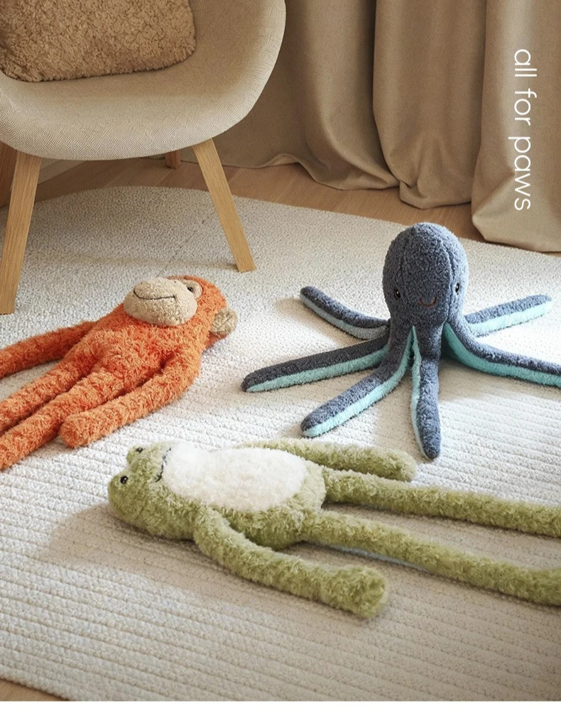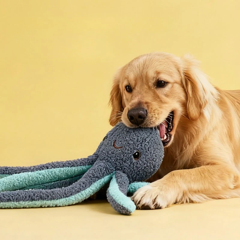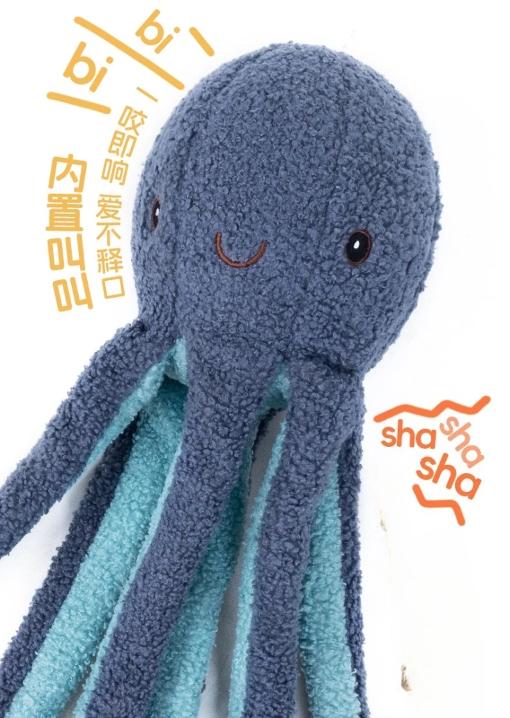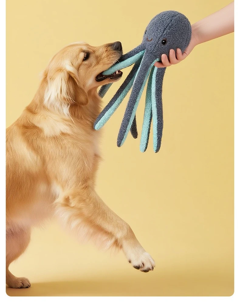 Diseño interno chirriante: estos juguetes para masticar para cachorros no solo contienen un airbag que suena en el interior, que crea un sonido BB cuando lo presionas, sino que también hay un papel arrugado dentro de los tentáculos del pulpo.Es fantástico para atraer la atención de tu perro y puede disfrutar de un juego duradero, mantenerlo ocupado y aburrirse.