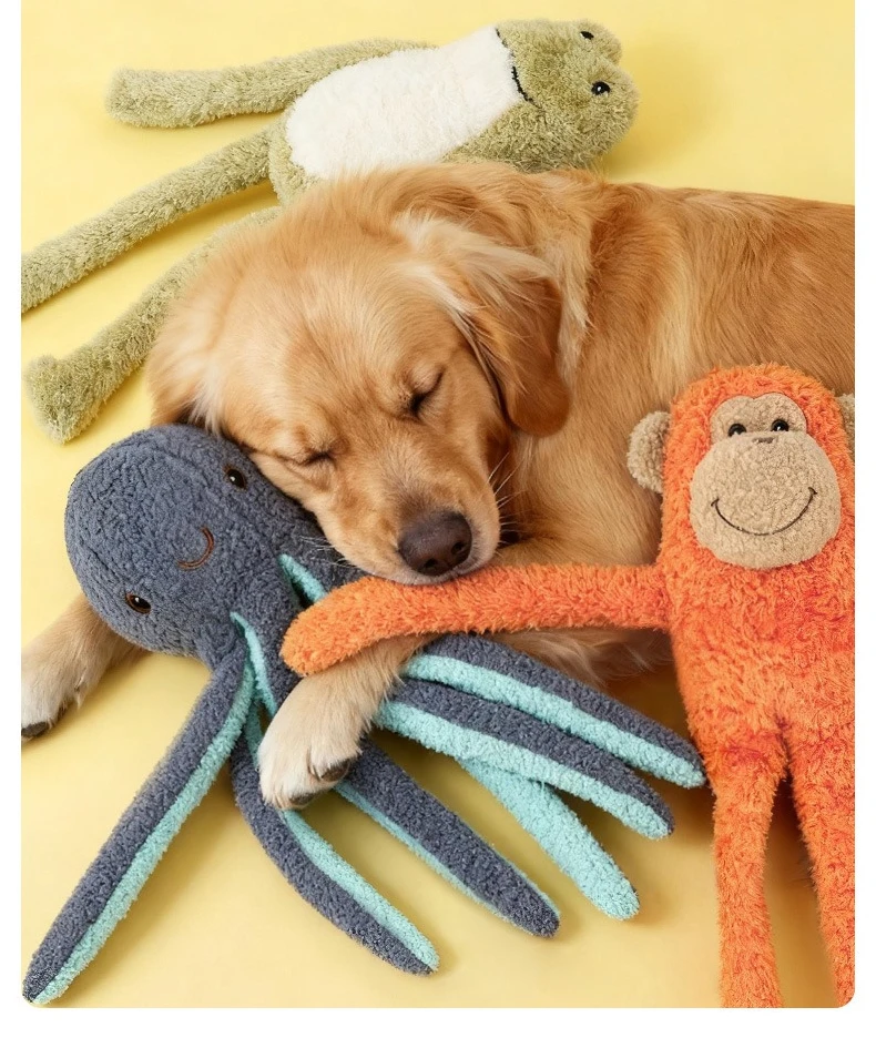 Juguete de entrenamiento de inteligencia: puede jugar a esconderse con su perro, ocultar los juguetes del pulpo en el césped o en cualquier lugar, luego dejar que el perro busque, pruebe y mejore la inteligencia del perro.El diseño animal satisface el instinto natural de caza de la mascota y la mantiene ocupada para evitar dañar los muebles.