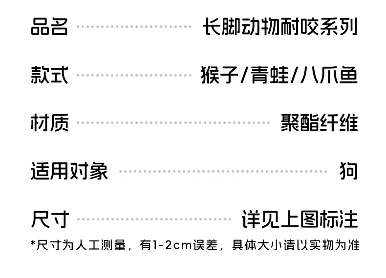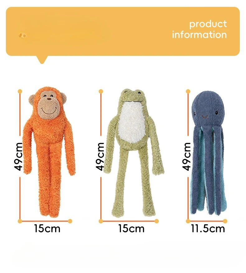 Juguete para perros sin relleno: el juguete para perros no tiene relleno dentro del cuerpo ni las piernas, lo que hace que el juguete para perros sea fácil de limpiar y secar.El diseño de formas animadas atrae la atención de los perros.