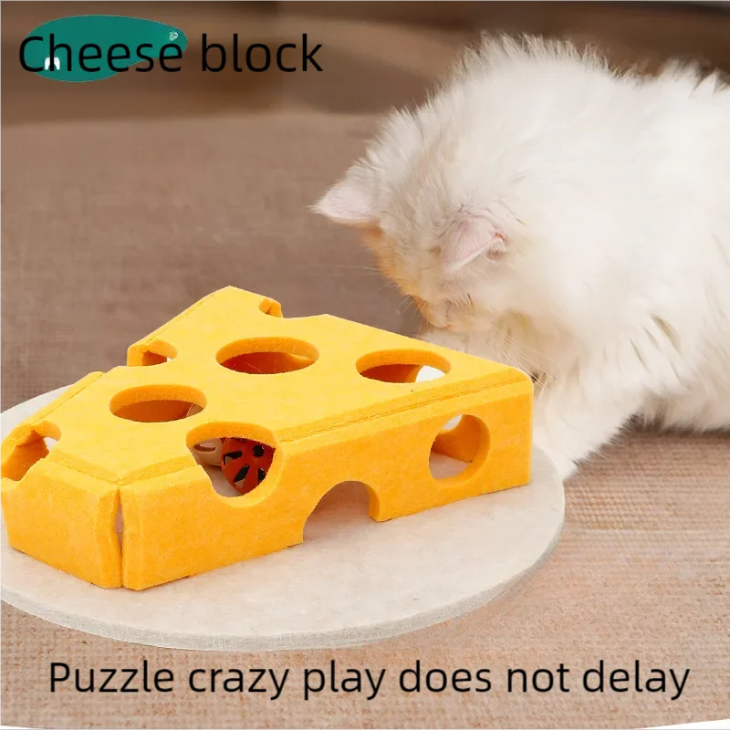 Juguete rompecabezas de fieltro para gatos, caja interactiva hueca para gatos – incluye bola