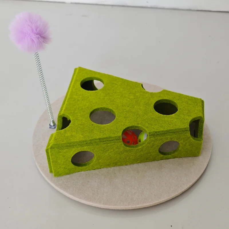 Estimula la mente y los sentidos de tu gato con este Juguete Rompecabezas de Fieltro, una caja hueca interactiva que incluye pelotas internas para mantener a tu mascota entretenida durante horas. Su diseño en forma de laberinto permite que tu gato busque, golpee y atrape las pelotas desde distintas aberturas, desarrollando sus habilidades naturales de caza.